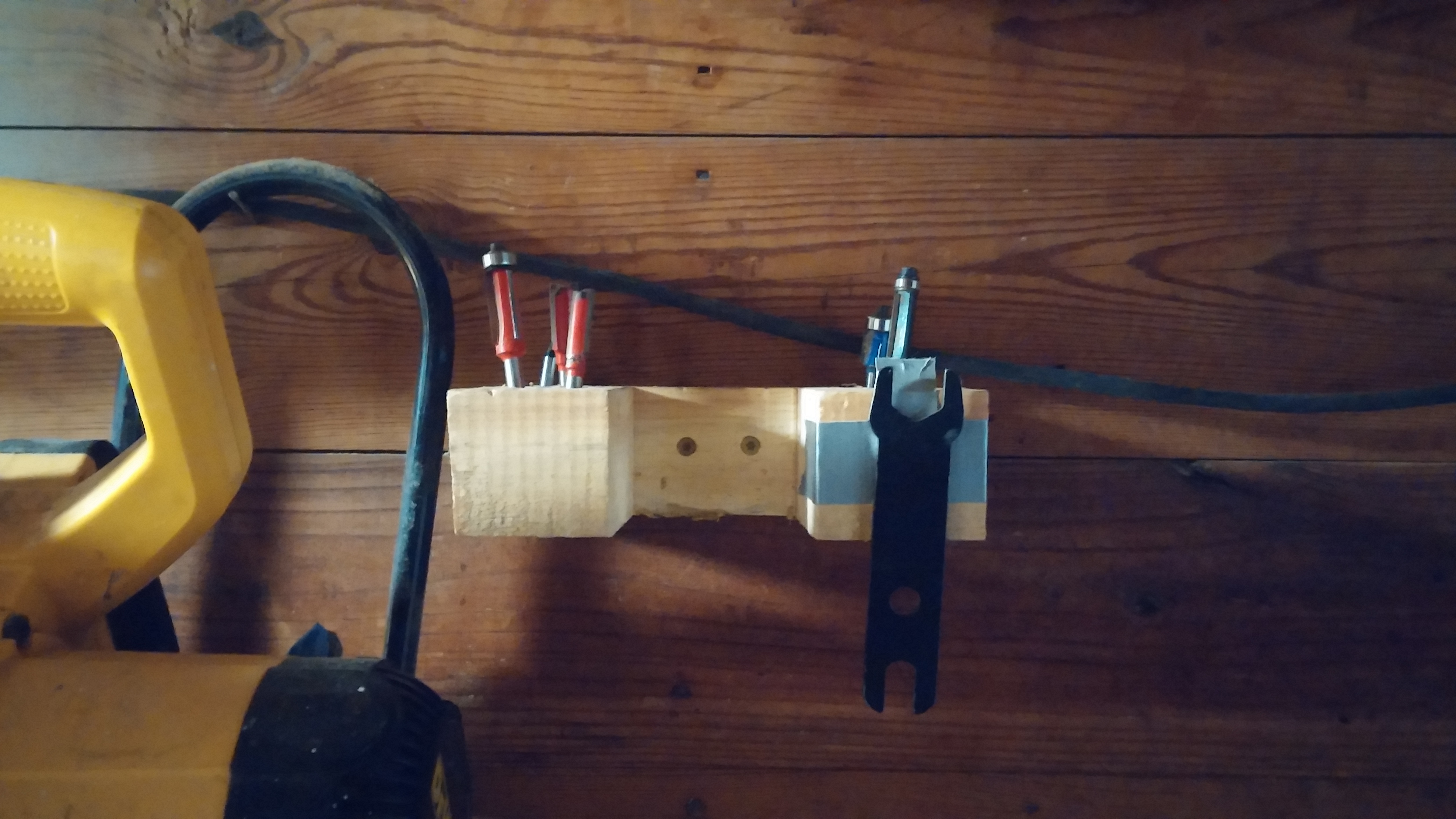 I cut a strip of luan board that was about 1/4″ more narrow than my cutter head. This board is about 1/8″ thick, allowing me to plane up to 1/8″ of material. I would have preferred a board closer to 1/4″ but this is what I had that was flat and smooth. I simply clamped it to the infeed table at the far end.
