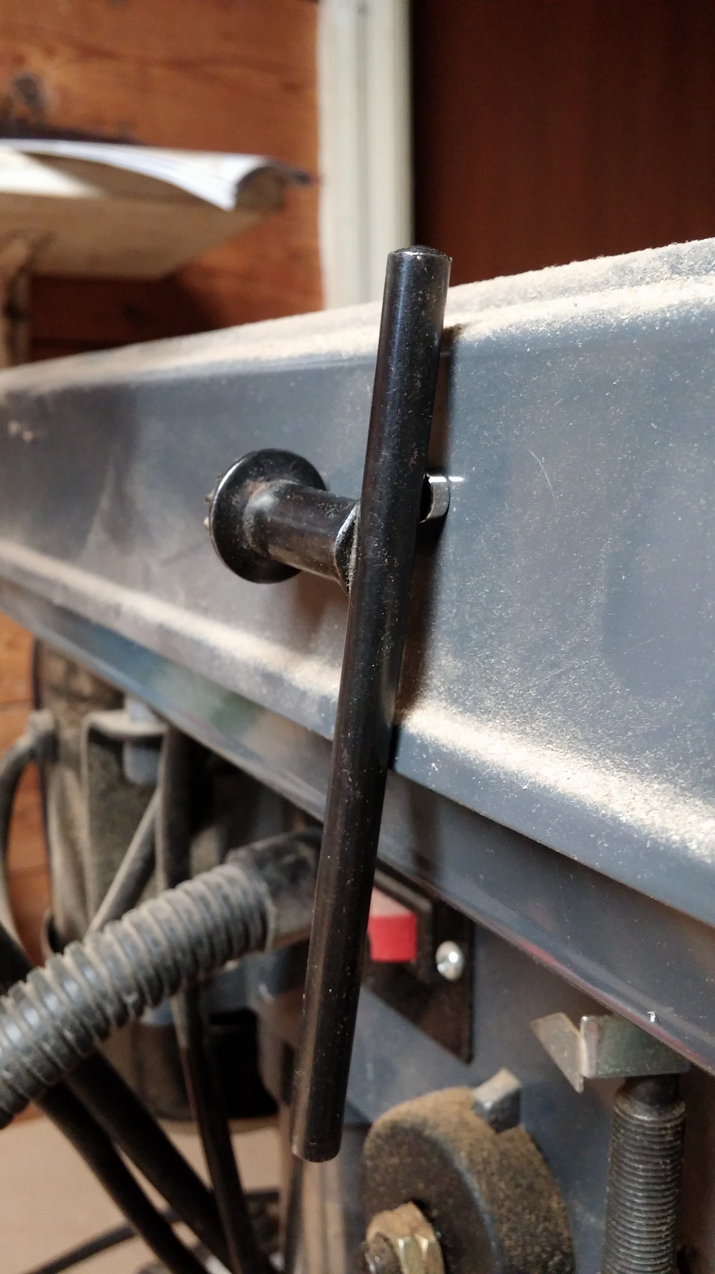 Next, you must lower the infeed table to account for the luan. I usually plane about 3/32 at a time, so I just moved the dial 3/32 past the 1/8″ mark, or 7/32″